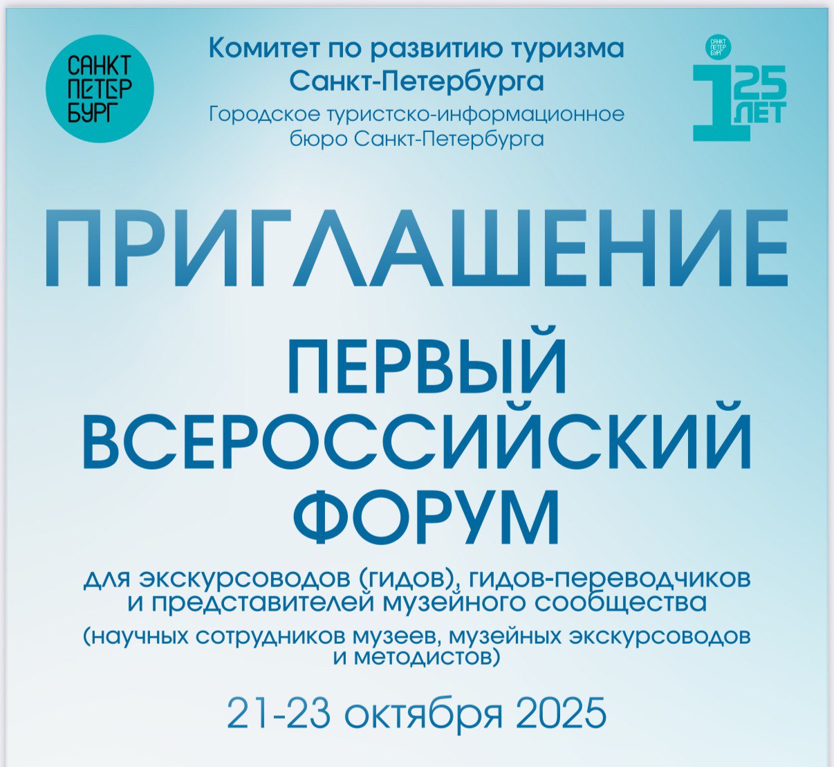 Городское туристско-информационное бюро города Санкт-Петербурга сообщает о проведении Всероссийского форума для экскурсоводов (гидов), гидов-переводчиков и представителей музейного сообщества.